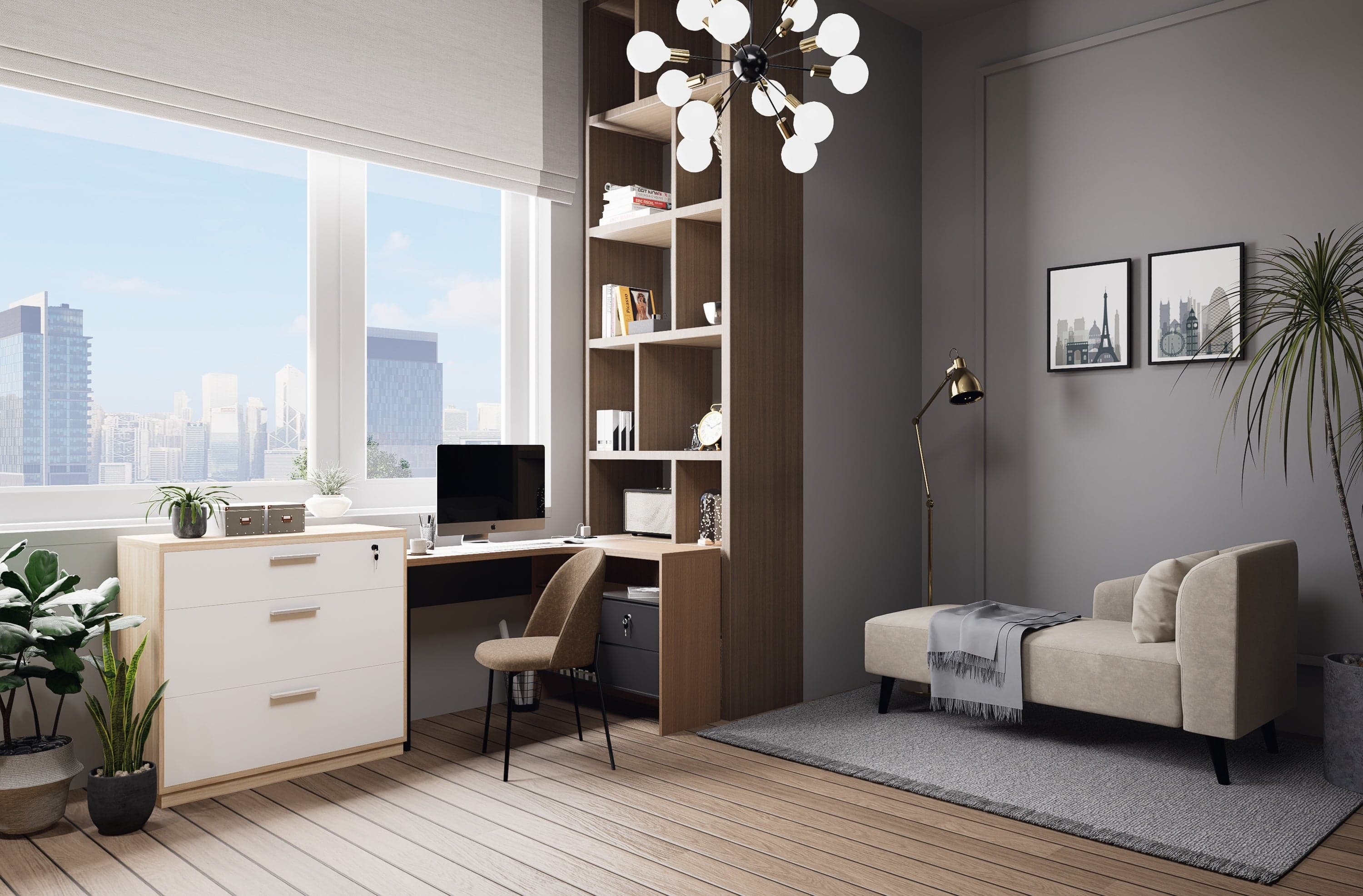- เลือกเฟอร์นิเจอร์ให้เหมาะสมกับการทำงาน โดยเราอาจมองหาตู้ลิ้นชักอเนกประสงค์มาวางข้างโต๊ะทำงาน สวย ๆ ของเรา สำหรับใส่ของใช้ที่จำเป็น เช่น ปากกา ดินสอ หรือโพสต์อิท ฯลฯ เพื่อจะได้ไม่รบกวนพื้นที่บนโต๊ะทำงานนั่นเอง